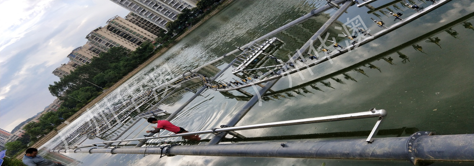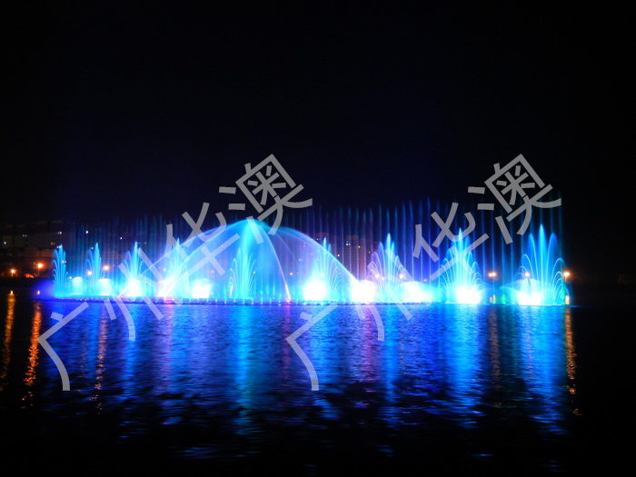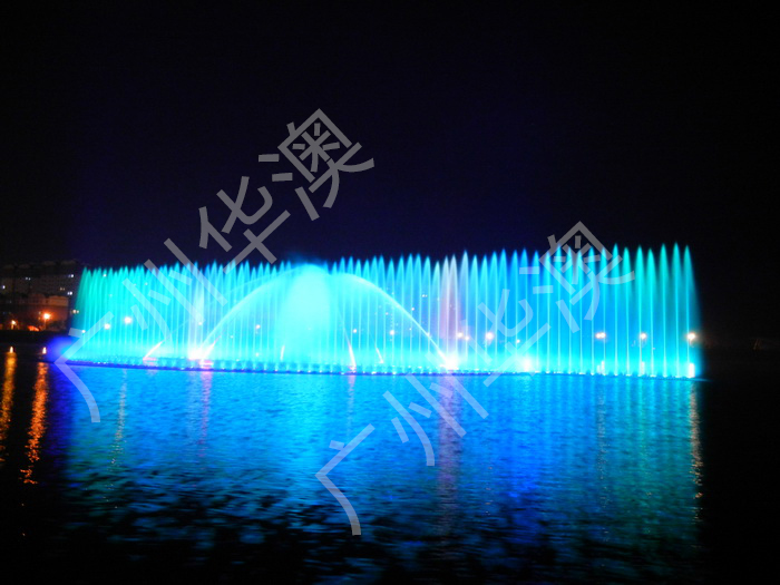 本方案湖面喷泉采用国际领先国内独家的集中供水方式,位于:清远英德仙湖设计水泵61台、42台变频器、喷头403套、水下灯472套,通过自主研发的音乐喷泉控制软件。装机运行功率约为250KW。该工程采用漂浮装置,表演时整体设备浮出水面,不影响整体湖面的完整美观。