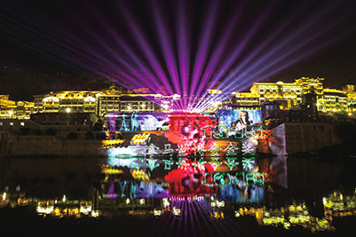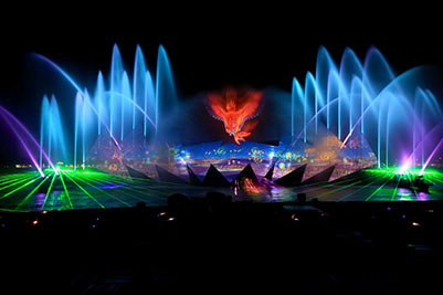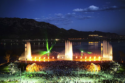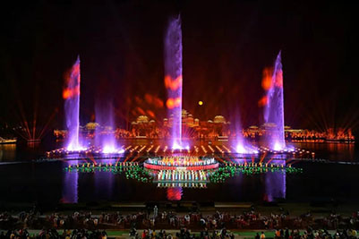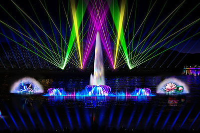 灯光水舞秀运用先进的声、光、电、水等手段,让真实的水舞与虚拟的影像互动起来,在一段声情并茂的画面中,用高超的创意植入品牌文化与当地特色,让观众参与者感到震撼与感动。