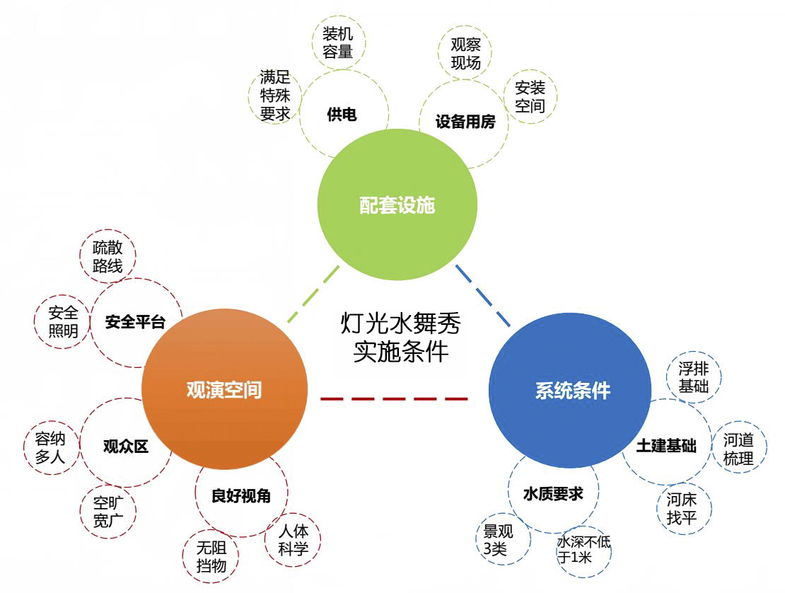 灯光水舞秀整体设计中始终要保持“经济型、技术性、艺术性”三者融合、相辅相成的关系,更大程度地去保持最终效果的呈现,给予水的灵魂生命的力量,融入人的情绪,触发人们内心的共鸣。真正打造一场“视听盛宴”的同时,让科技文化走进大众的内心,从而让艺术散发出更耀眼的光芒和力量。